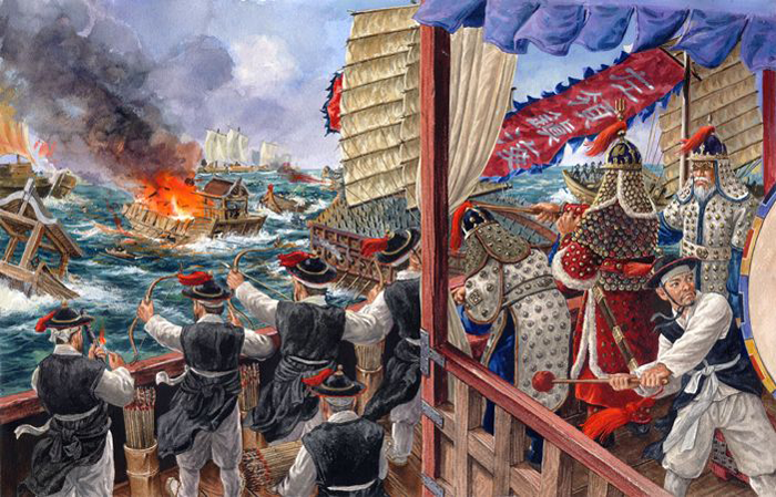 flota Coreana junto con la China, ambas comandadas por los almirantes Yi